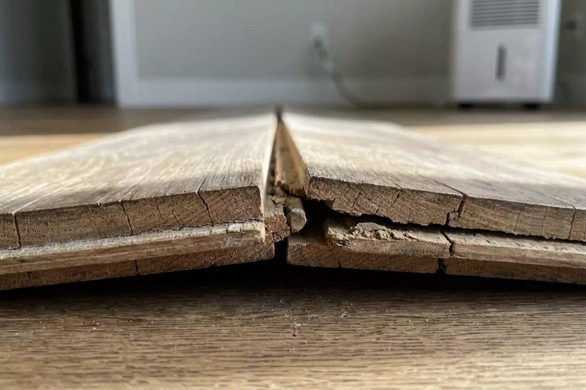 | Трещина по кромке с расслоением | У дверных проёмов, у радиаторов, возле мокрых зон | Намокание, пересушивание или резкая смена влажности | Потемнение, «лохматость» волокон, следы высохших подтёков |