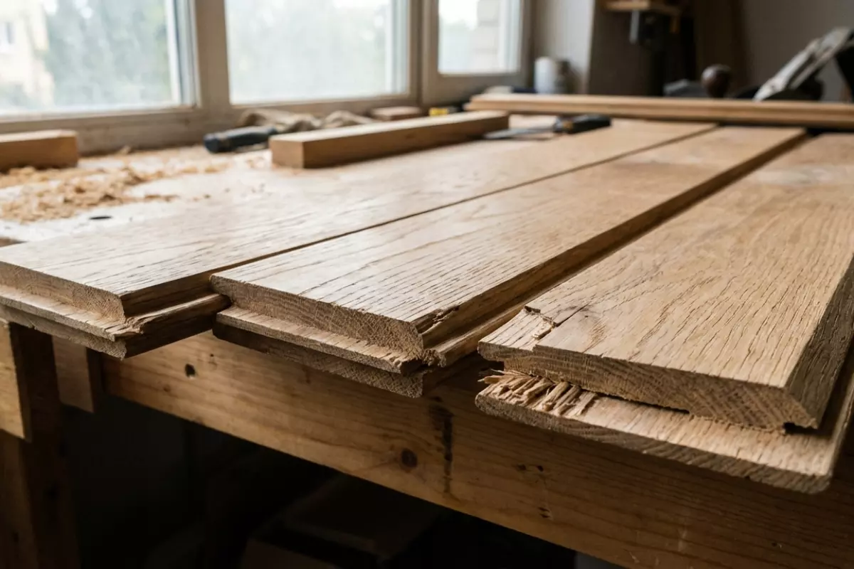 | Сухой воздух зимой (отопление, редкое увлажнение) | Усушка, уменьшение ширины, рост щелей | Появляется люфт, кромки трутся при нагрузке | Стачивание замка, сколы верхней кромки, скрип | Увлажнять воздух, держать стабильный режим, исключить перегрев у радиаторов |