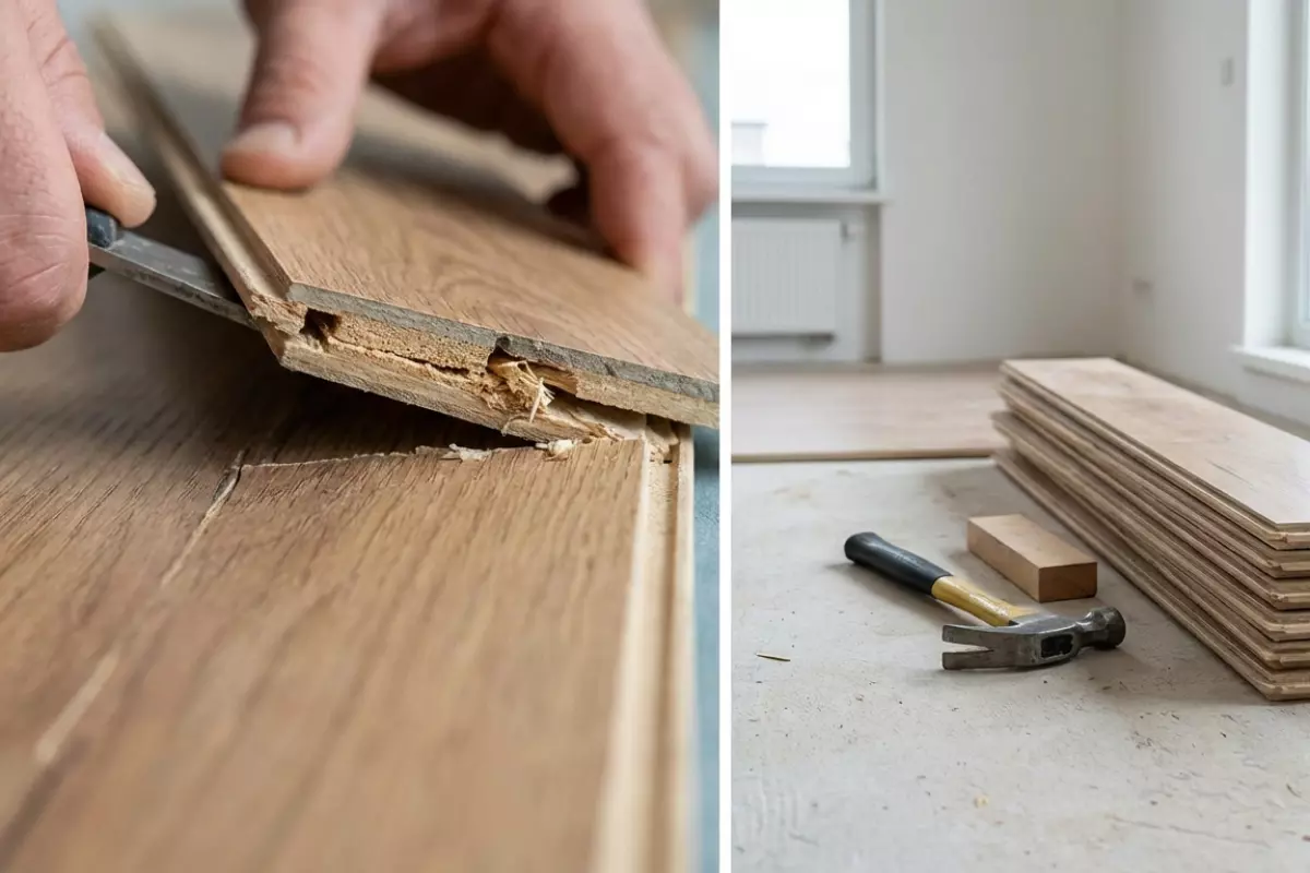 Починить соединение реально, если повреждение локальное: смят «язычок», есть небольшие сколы по кромке, доска разошлась на 0,5–2 мм, а основание ровное и без «пружины». Когда же кромка раскрошилась по всей длине, замок «гуляет» из‑за прогиба основания или есть вздутие от влаги, ремонт будет временным — надежнее менять планку или устранять причину в основании.