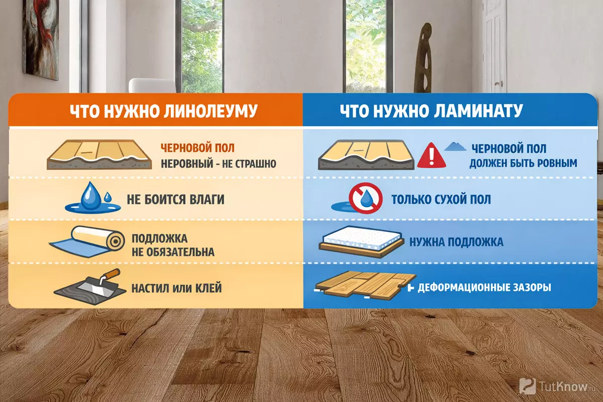 Чем линолеум и ламинат принципиально отличаются