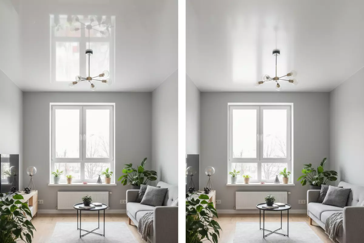 - Глянец и полуглянец добавляют отражения и ощущение воздуха, но при активных бликах могут подчеркнуть неровности и «шум» в интерьере.
