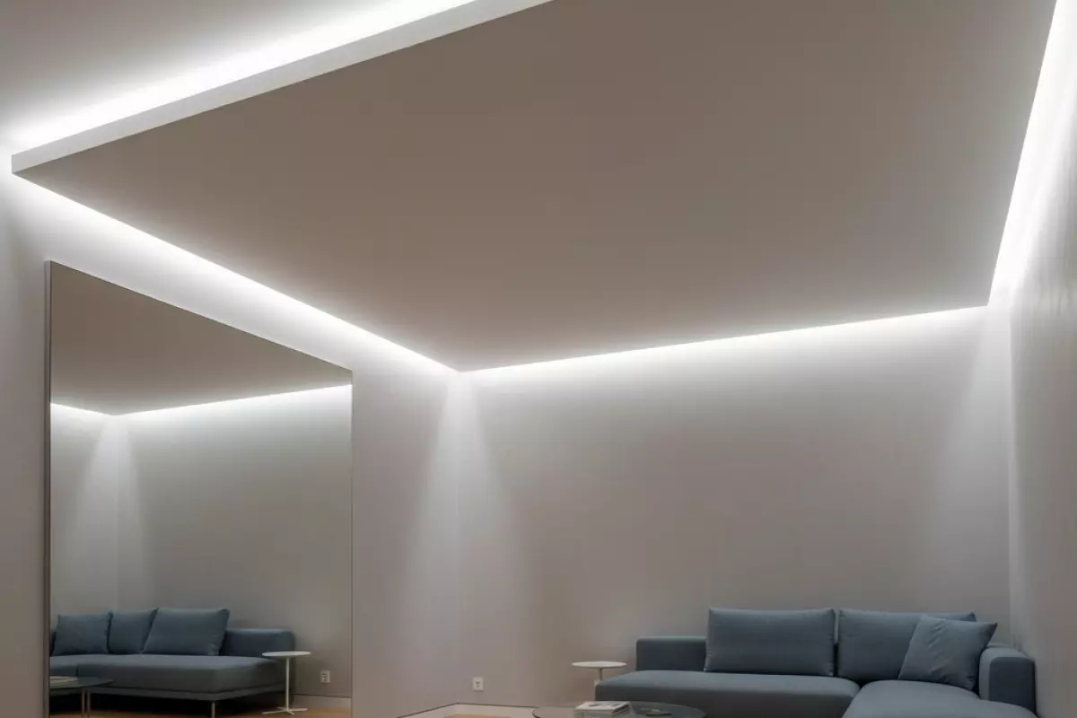 | Скрытая подсветка по периметру | Даёт эффект глубины и «парения» | В гостиных и спальнях, где нужен мягкий вечерний свет | Слишком холодная температура света — делает интерьер «плоским» |
