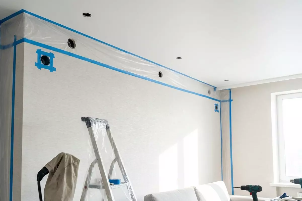 | Потолочные работы | Монтаж профиля, закладных, натяжного полотна | Сверление и пыль не задевают чистовую отделку стен | Следы на обоях, риск отслоений по периметру |