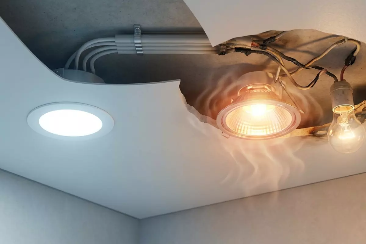 - Монтаж встроенных светильников без подходящих термоколец и платформ: нагрузка и температура концентрируются в одной точке.