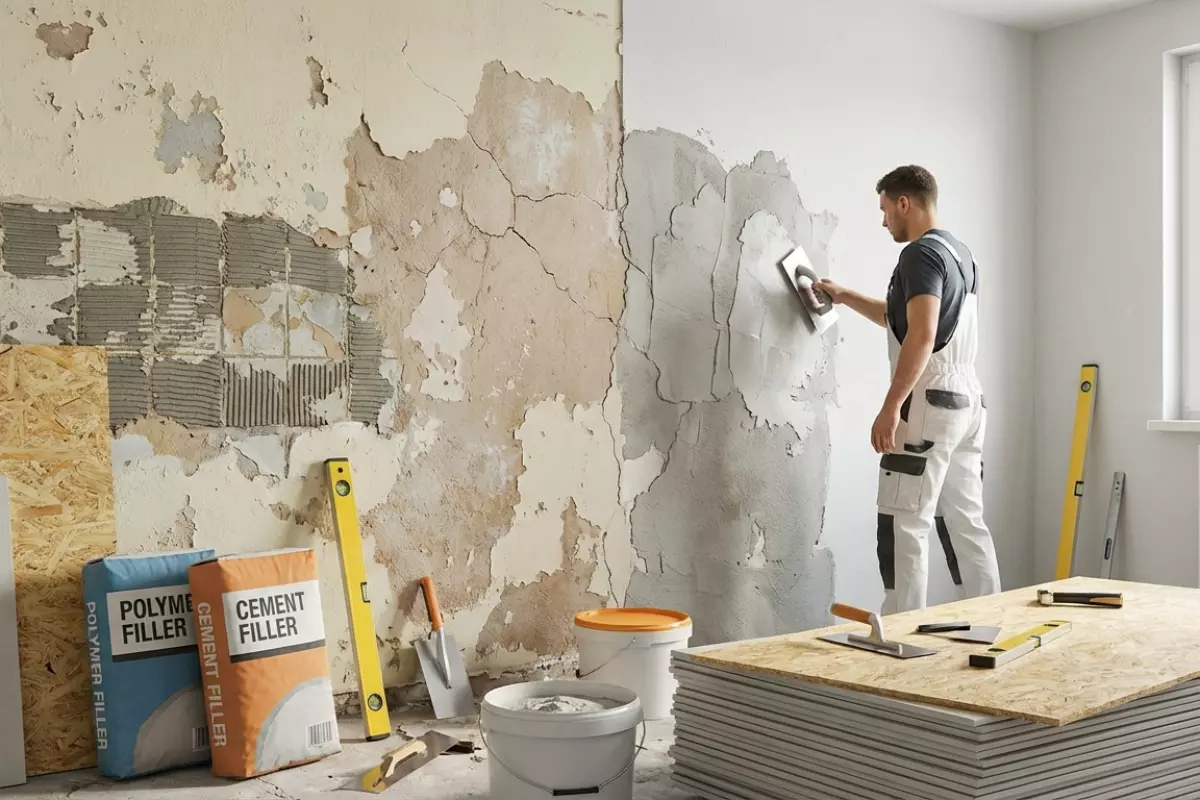 Выбор смеси и листовых материалов зависит от того, что именно осталось на стене (краска, плитка, старая штукатурка), насколько поверхность «гуляет» по плоскости и чем планируется финиш (обои, покраска, декоративная штукатурка). Ниже — варианты, которые чаще всего помогают привести стены в порядок без тотального снятия старого слоя.