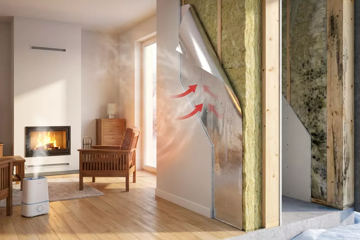 Когда зимой в комнате готовят, сушат бельё или просто живут, влажность растёт. Тёплый воздух пытается пройти в стену через микротрещины и стыки. Барьерный слой снижает этот поток и делает его контролируемым: меньше влаги попадает в конструкцию — меньше шансов, что внутри появится мокрая зона. Но важно помнить: если влага уже оказалась в стене (например, из-за протечки или сырого материала), ей нужно куда-то выходить, поэтому «запирать» конструкцию с двух сторон непроницаемыми слоями без расчёта — плохая идея.