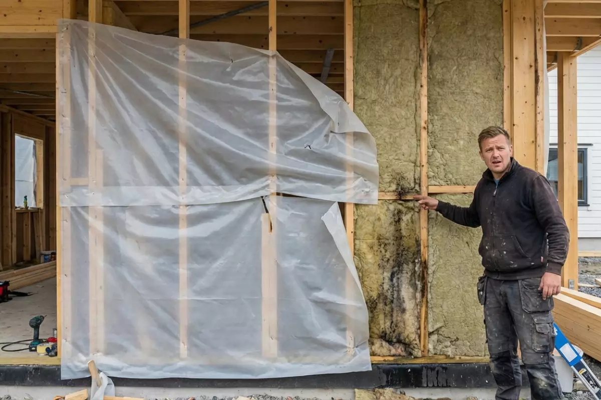 Проблемы начинаются, когда плёнка оказывается «не в том месте» или работает не как система, а как заплатка. Тогда влага не уходит наружу, а запирается внутри конструкции: утеплитель сыреет, древесина темнеет, на откосах и углах появляется плесень, а отделка начинает пузыриться.