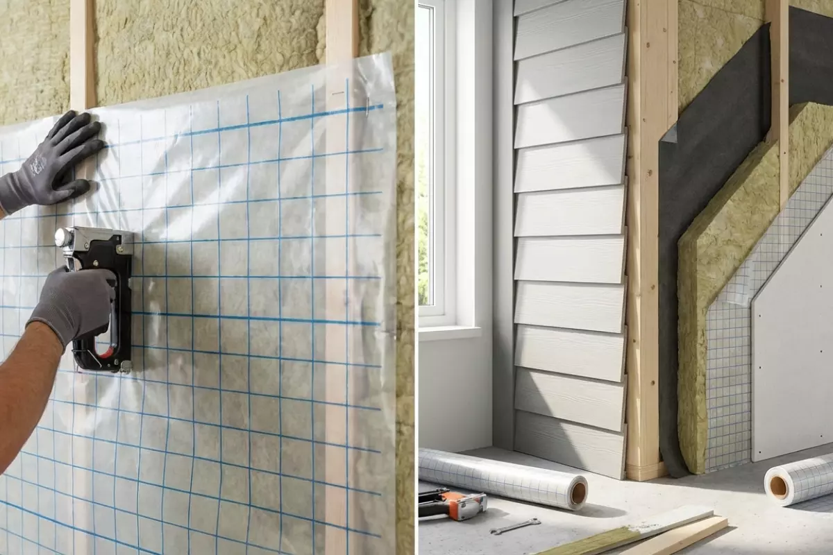 Эти два слоя решают разные задачи: один работает с водяным паром изнутри помещений, другой — с жидкой водой снаружи или в зонах риска протечек. Если перепутать материалы или поставить их «не той стороной», в стене может накапливаться влага, утеплитель теряет свойства, а дерево и отделка начинают страдать.