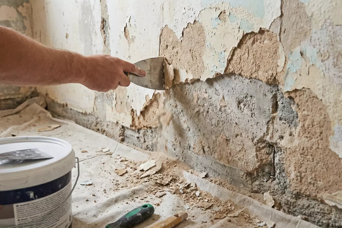| Выравнивание «по верхам» без укрепления рыхлых участков | Верхний слой держится, а основание под ним крошится | Старые стены, осыпающиеся штукатурки | Отрыв вместе с основанием |