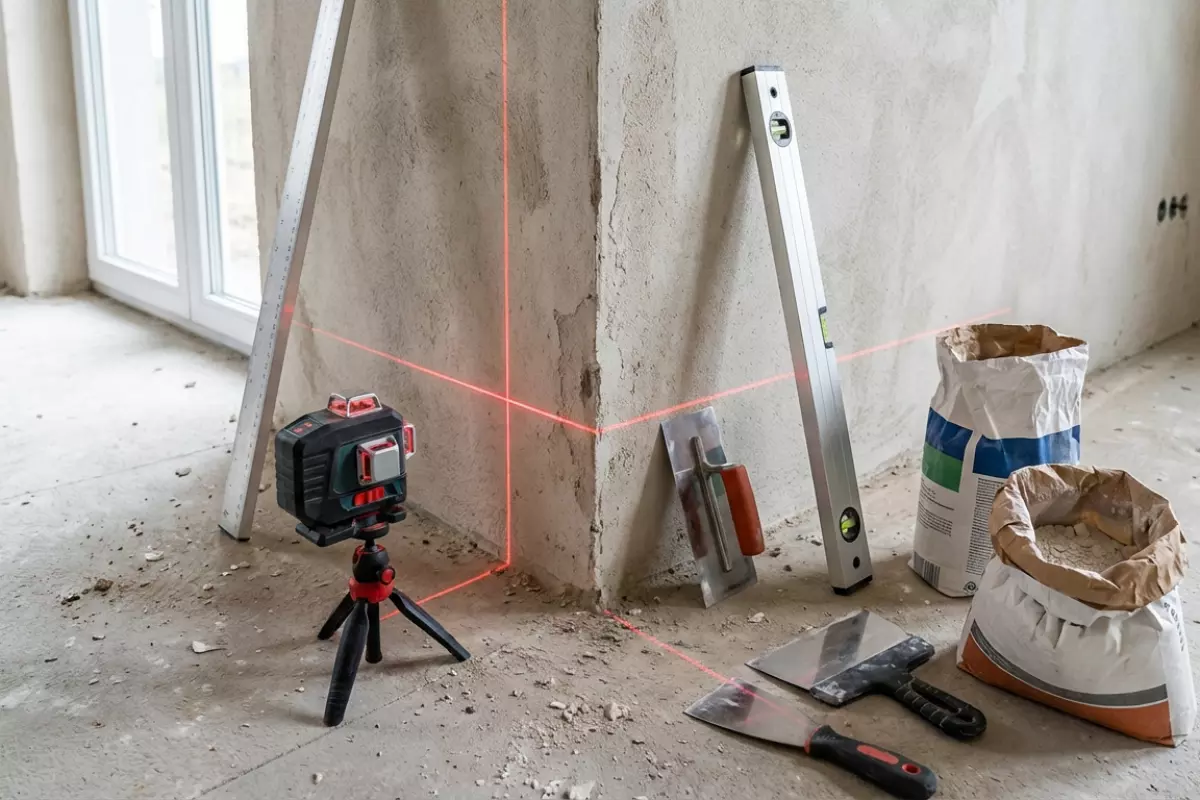 | Выставить ориентиры под выравнивание | Маяки, лазер, отбивочный шнур | Задать плоскость, от которой формируется ребро | Сначала решите, какая стена будет «базовой», иначе можно потерять размеры |