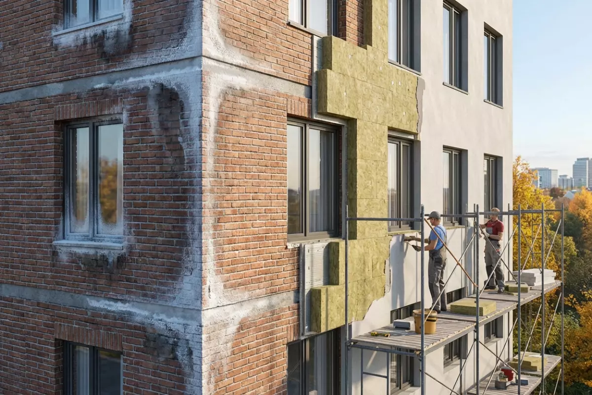 | Наружное утепление «мокрым фасадом» | Кирпич, бетон, газобетон, панельные стены | Снижает вероятность конденсата внутри, перекрывает «мостики» | Отслоение из-за плохой подготовки основания, ошибки в крепеже, трещины по сетке | Непрерывность слоя, правильные примыкания, защита откосов |