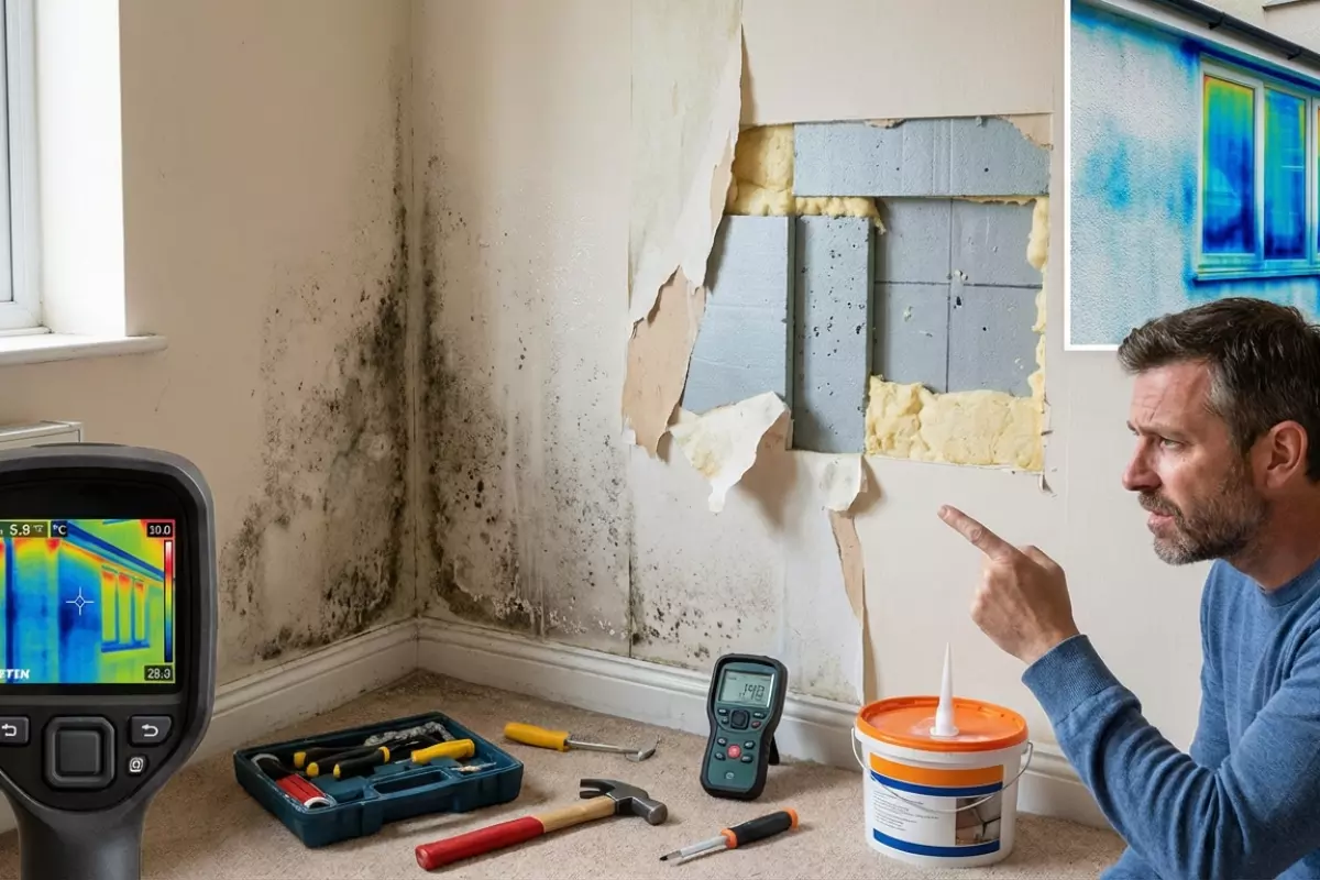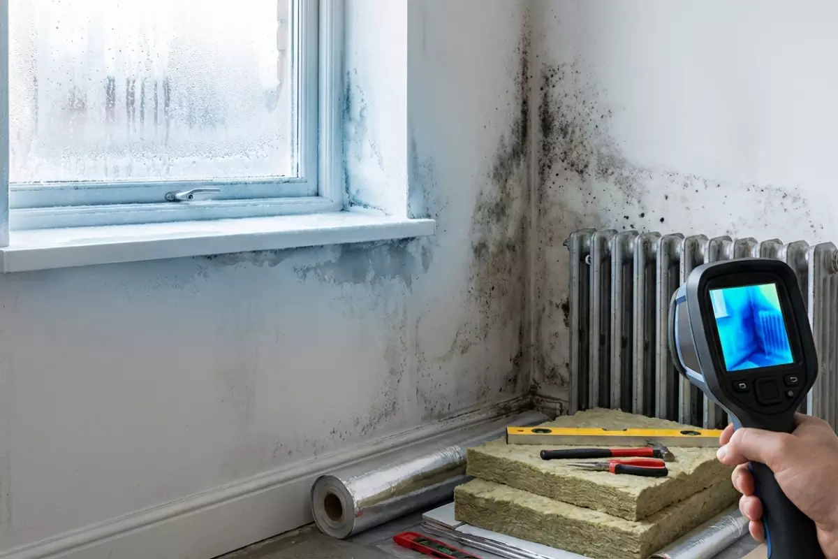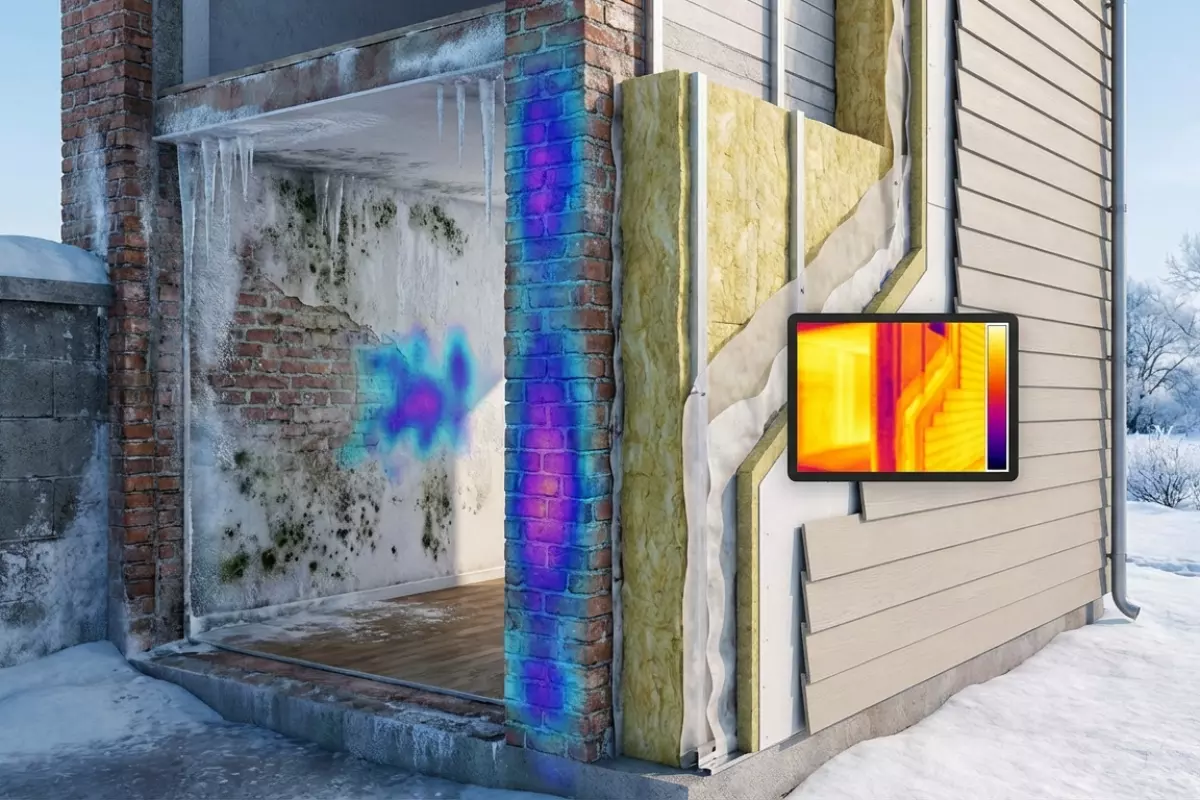 Начинают с поиска мест, где холод «пробивает» стену: углы, примыкания перекрытий, зоны вокруг окон и дверей, стык стены с цоколем, участки за радиаторами и любые проходы коммуникаций. Эти точки чаще всего дают конденсат, плесень и характерные «ледяные» полосы на отделке.