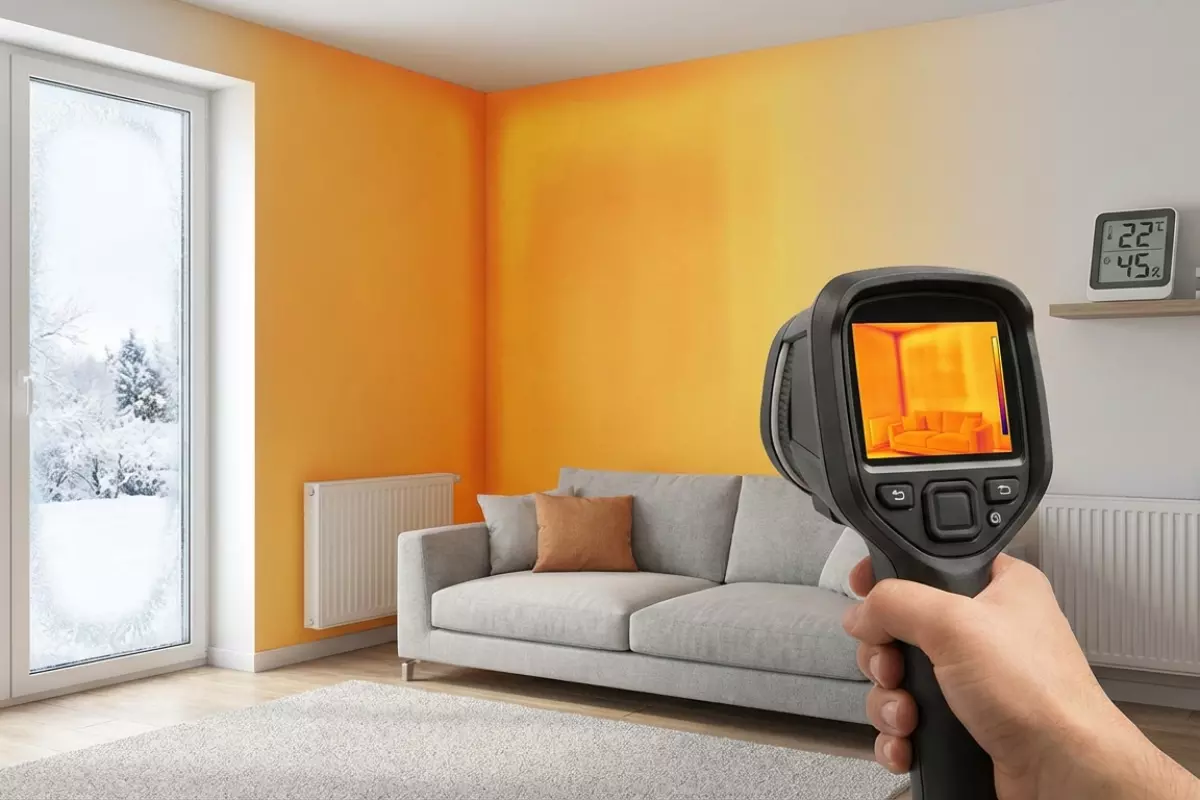 - Тепловизионная съёмка показывает холодные зоны, но её лучше делать при перепаде температур от 15 °C и без прямого солнца на фасаде.