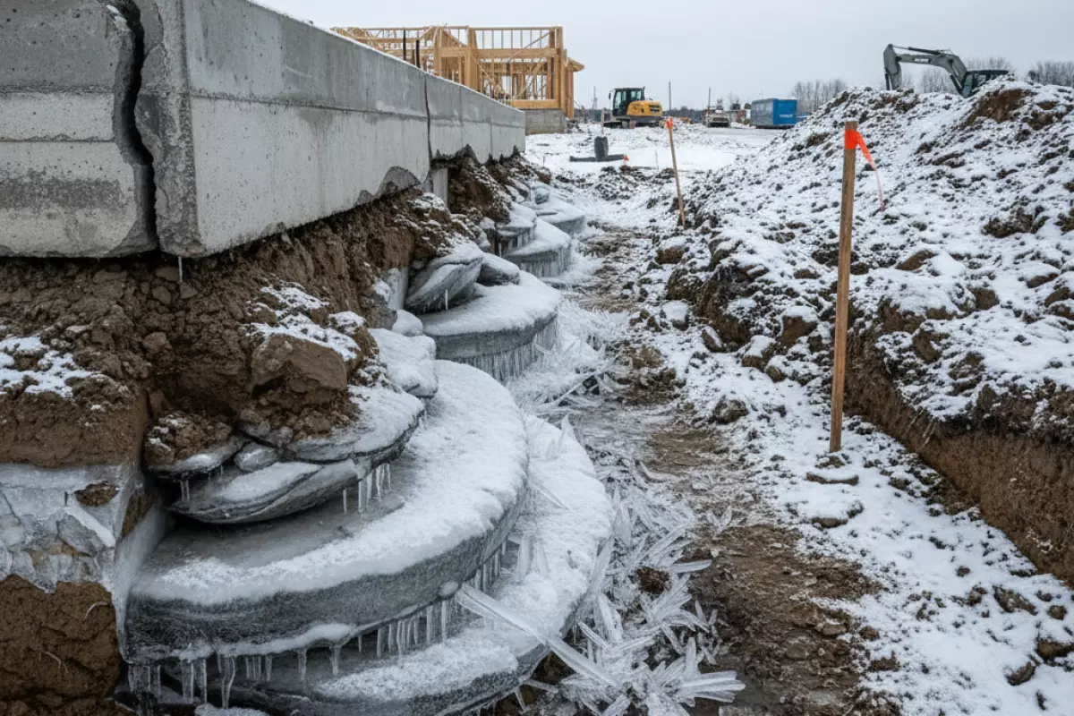 Подъём основания зимой начинается там, где влага в грунте успевает замёрзнуть и образовать «ледяные линзы». Чем глубже уходит фронт промерзания, тем больше объём слоя, который может набрать лёд и начать тянуть конструкцию вверх. При этом важна не только глубина по нормам, но и реальная картина на участке: снег, отмостка, дренаж, уровень воды и состав почвы легко меняют результат.