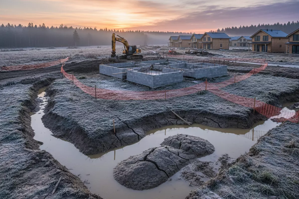 - Насыпной грунт без подтвержденного послойного уплотнения и контроля (часто встречается на участках после планировки/подсыпки).