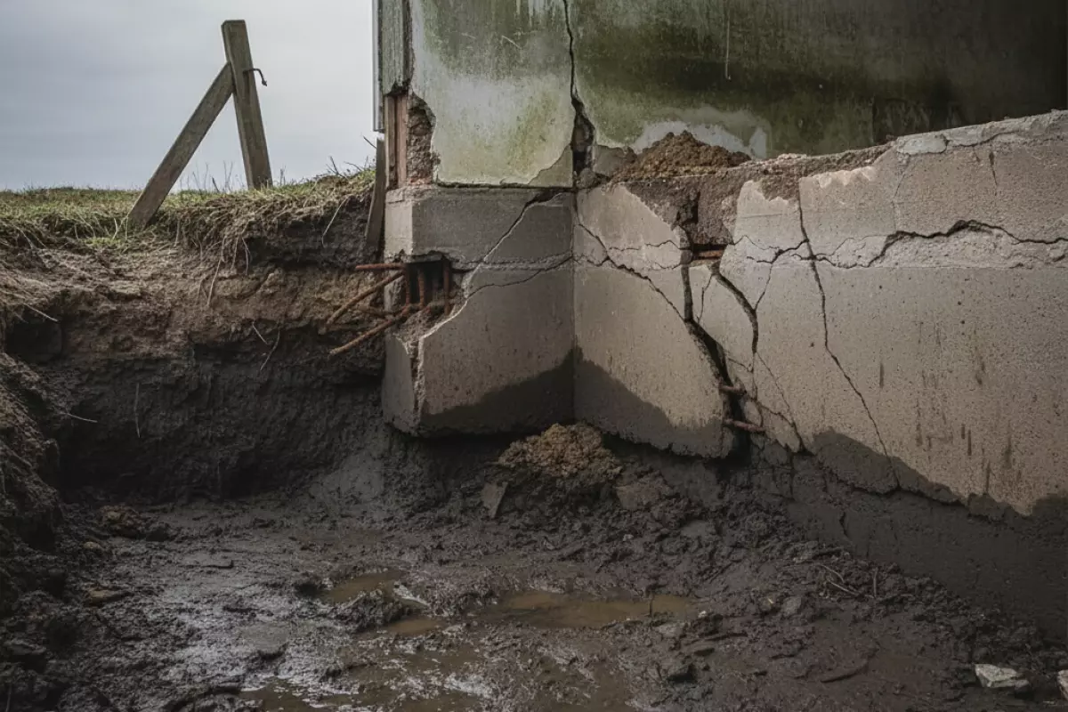 Когда вода стоит близко к поверхности, основание дома почти постоянно работает в условиях переувлажнения. Это влияет не только на бетон, но и на грунт вокруг: он теряет несущую способность, меняет объем при промерзании и начинает «играть». В итоге растут риски перекосов, трещин и проблем с подвалом или цоколем.