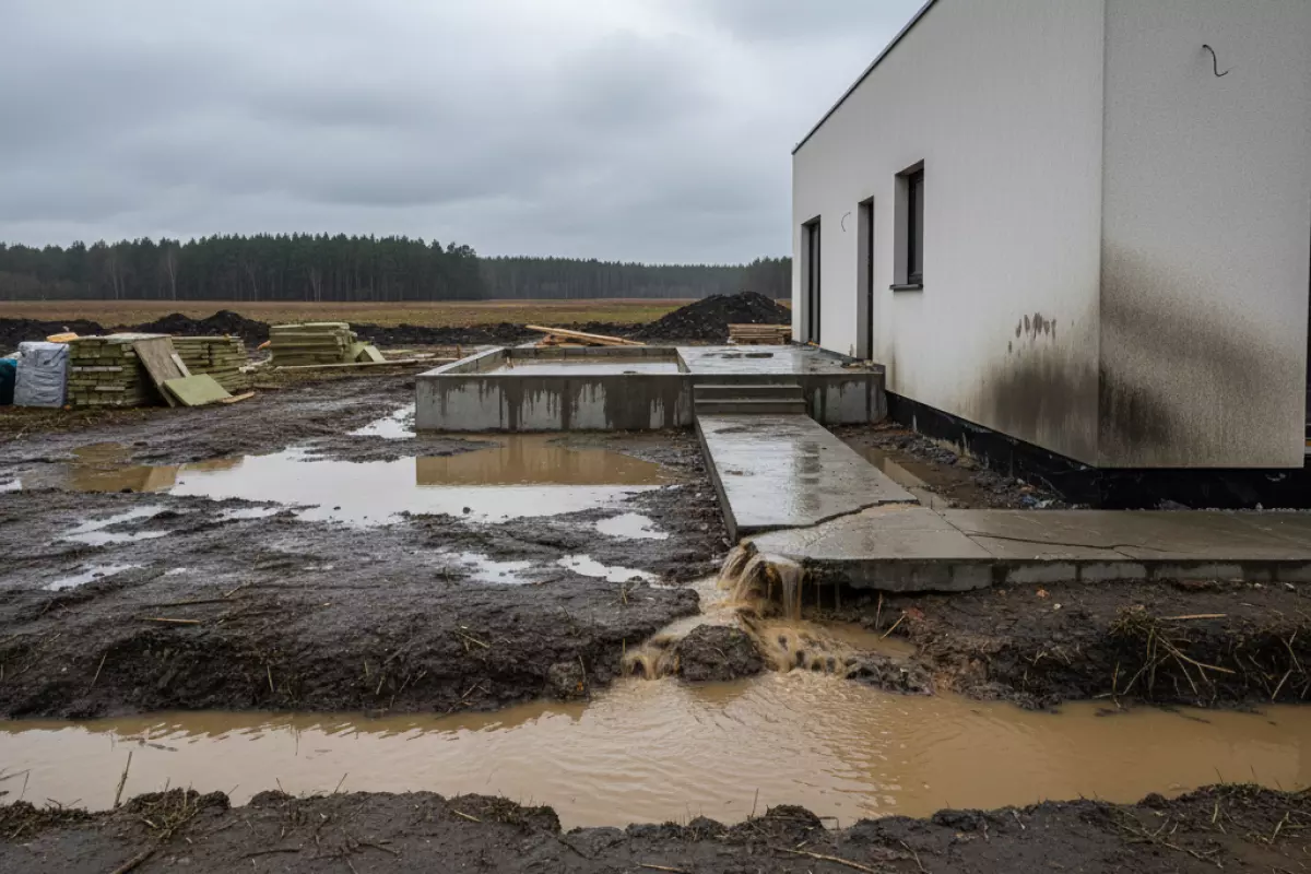| Неправильная планировка участка | Вода скапливается у стен, увеличивая давление и увлажнение | Подтопления, мокрый цоколь | Уклоны от дома, ливневая система, водоотвод |