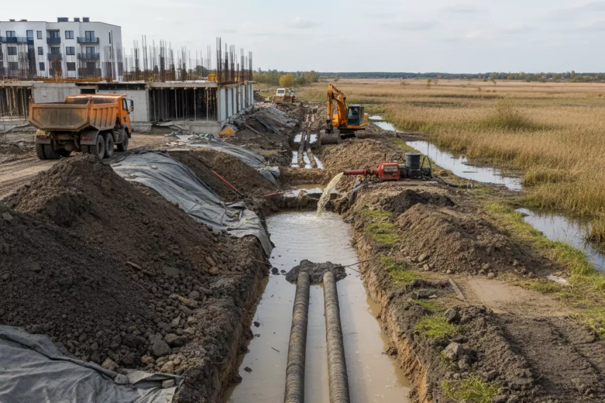 Даже если постоянный дренаж планируется позже, на время работ нужен понятный способ держать котлован и траншеи сухими. Иначе стенки «плывут», подушка размывается, а геометрия уходит.