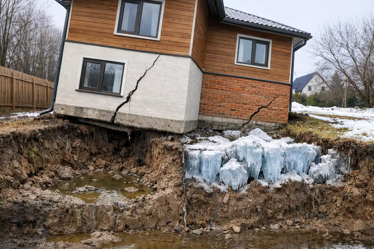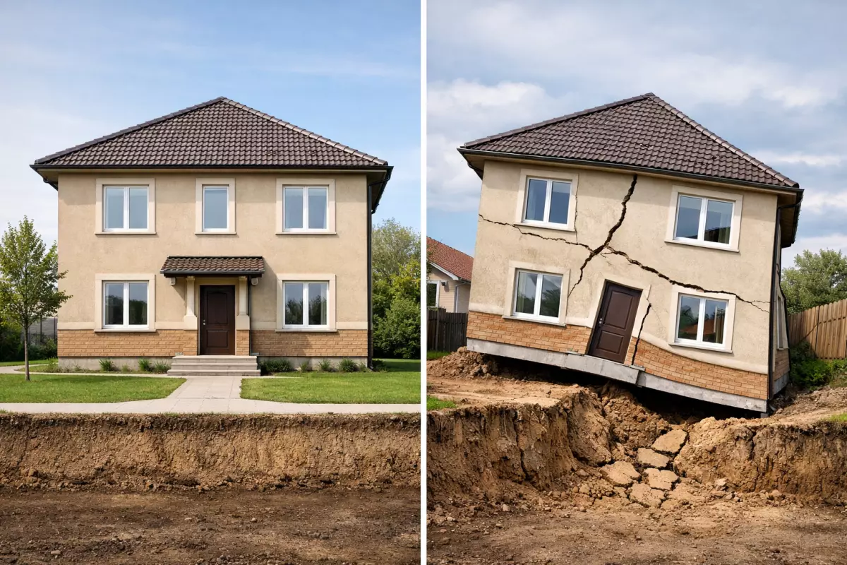 Когда тип основания выбирают «по привычке», без проверки по несущей способности и деформациям, дом может начать оседать неравномерно: одна сторона упирается в более плотный слой, другая — в слабый или водонасыщенный.