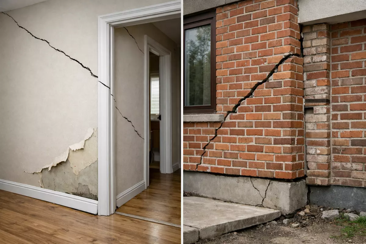 Проблема обычно проявляется не одним «симптомом», а набором мелких изменений по дому. Важно смотреть на динамику: что появилось недавно, что растёт со временем и где именно это происходит — в углах, у проёмов, на стыках пристроек.