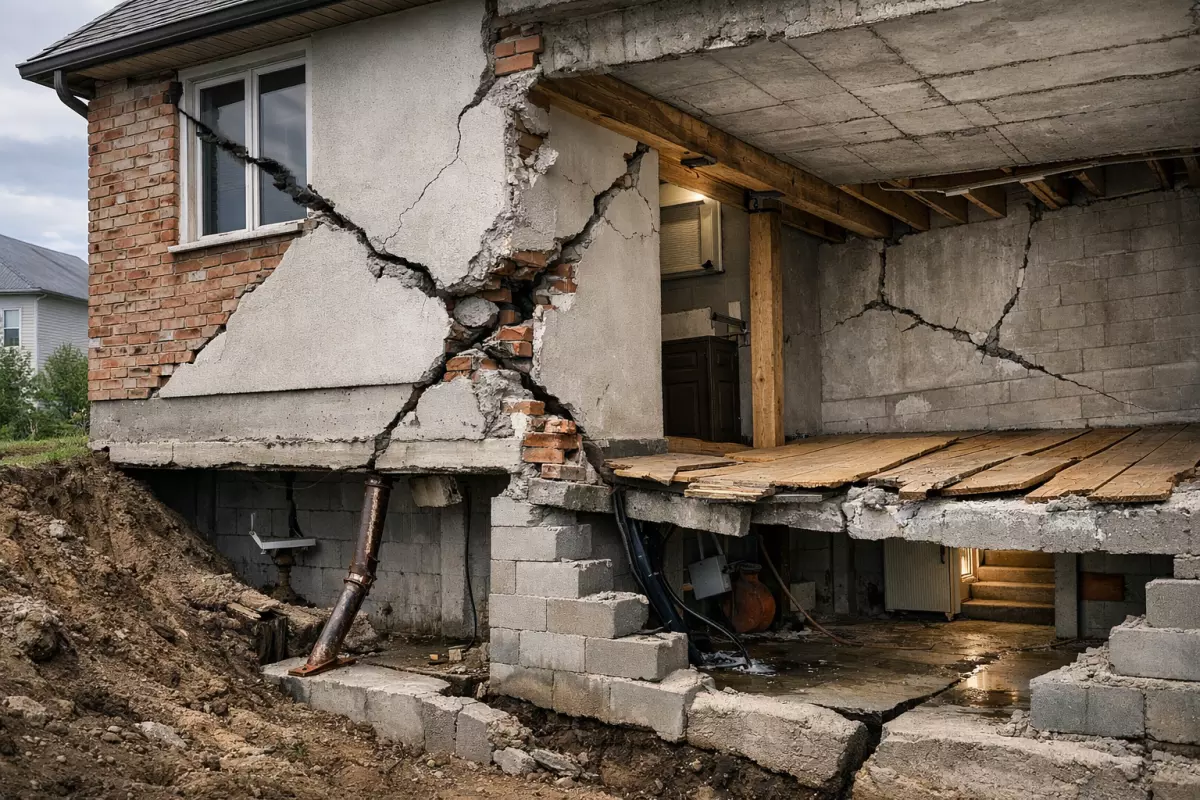 Если видите перекосы или трещины, важно не «лечить» только симптомы. Без проверки исходных расчётов, геологии и схемы водоотведения легко усилить не то место и ускорить деформации в другой части дома.