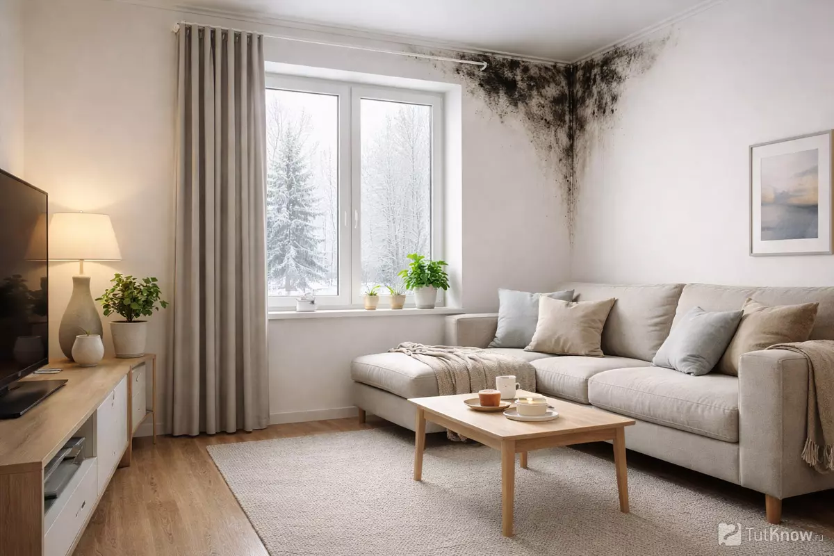 Проблема начинается, когда дом «запечатывают» со всех сторон: плотные окна, сплошные плёнки, герметики, утеплитель без щелей. Воздухообмен падает почти до нуля, а влажность из кухни, душа, стирки и даже дыхания остаётся внутри. В итоге точка росы смещается ближе к внутренним слоям, и влага находит слабое место: углы, откосы, стыки, примыкания.