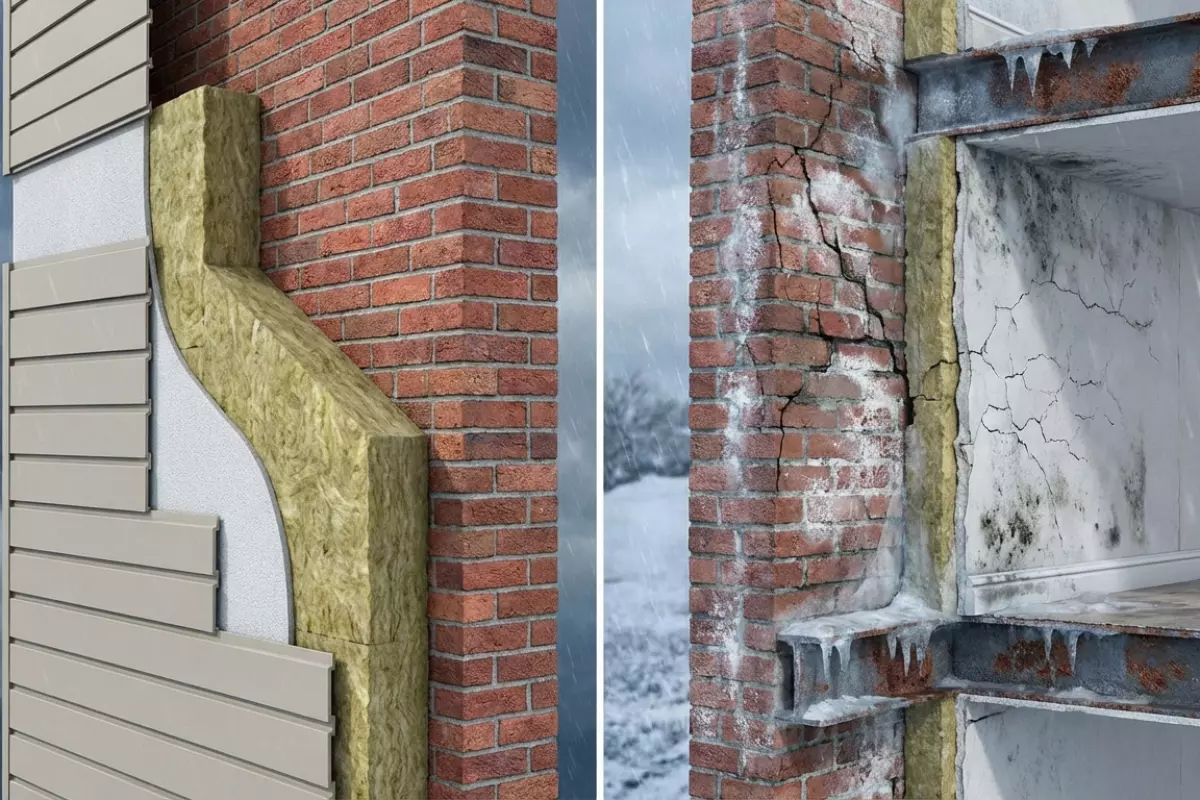 - Кирпичные и блочные стены, которые важно держать в тёплой зоне, чтобы не ускорять разрушение швов и материала.