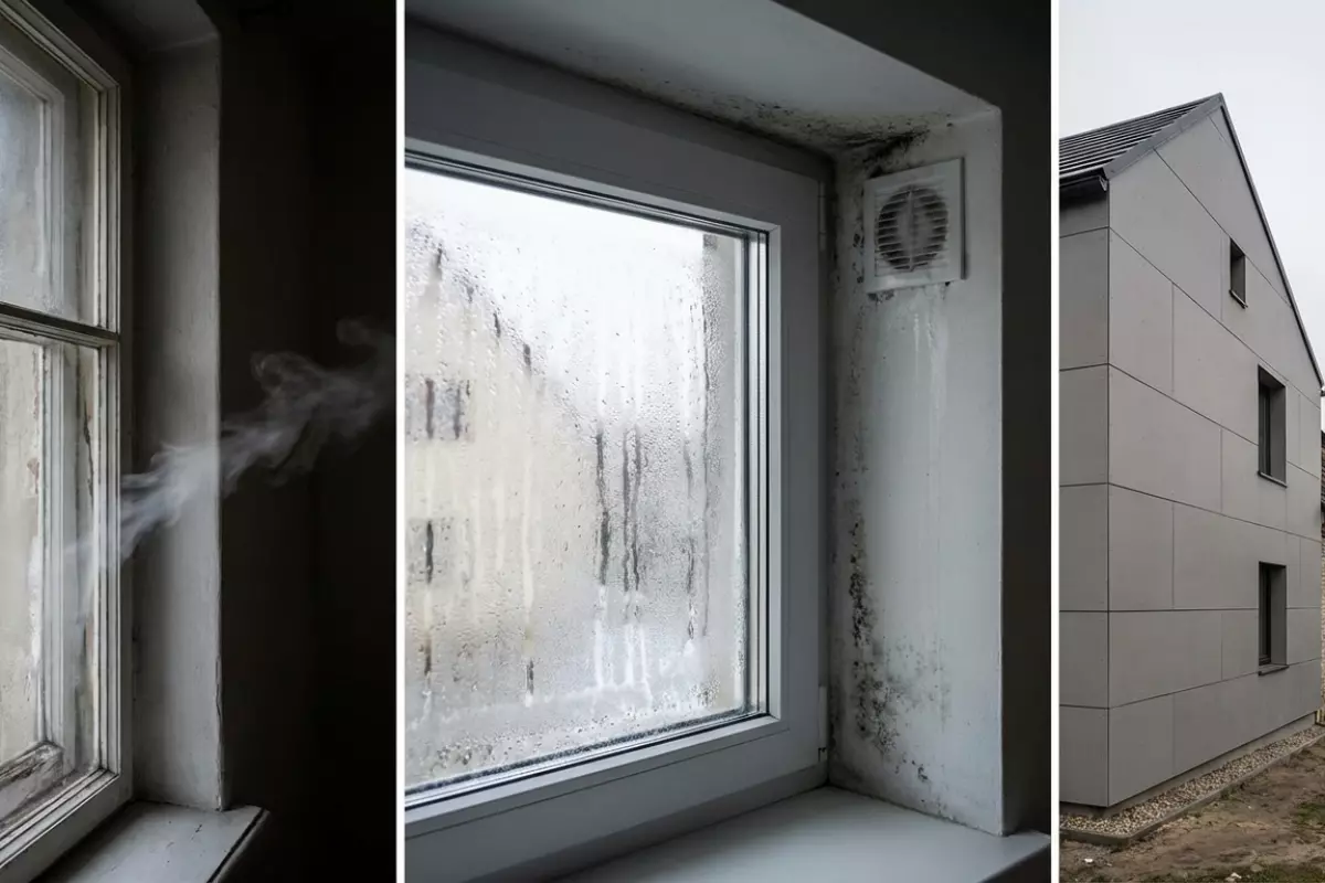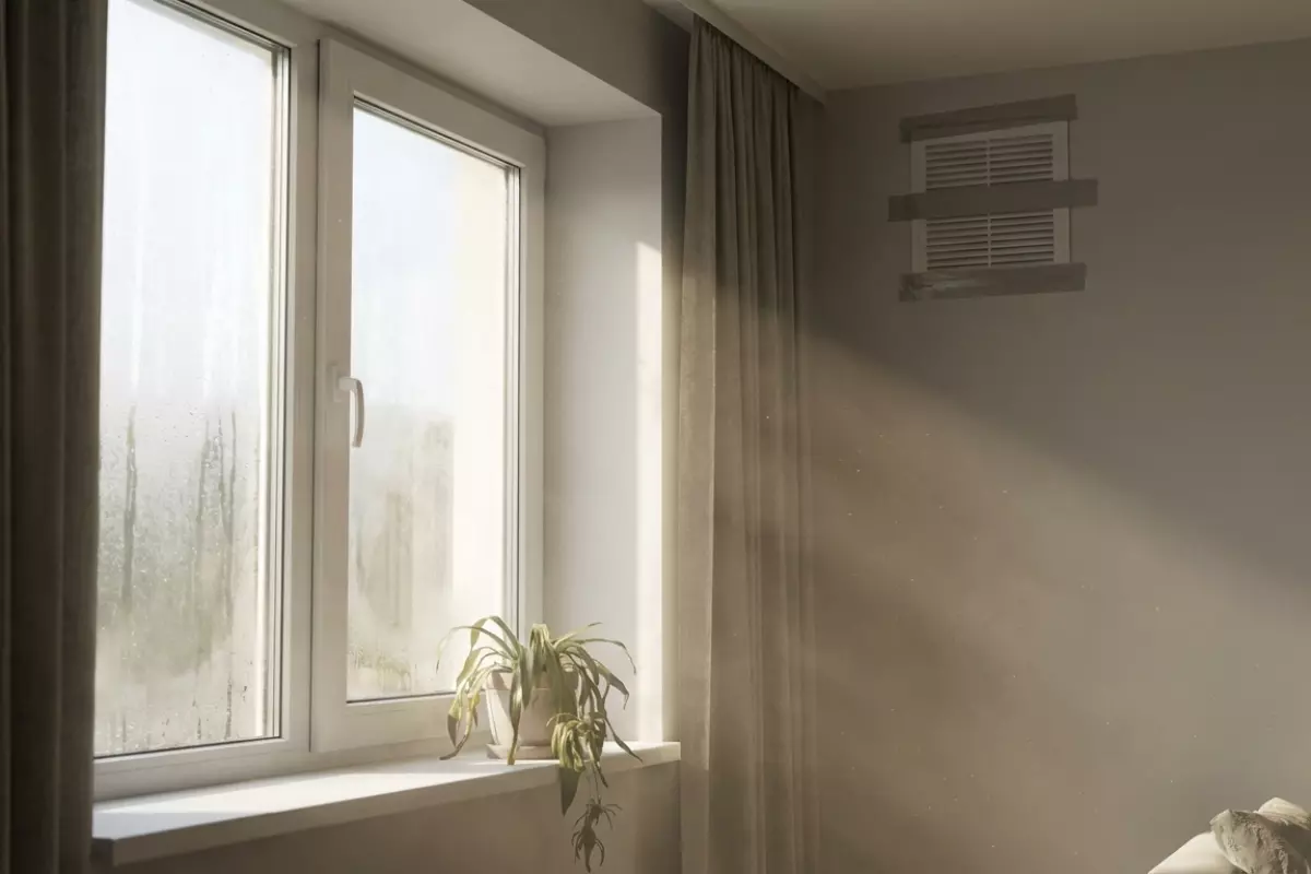 Первые сигналы обычно бытовые: духота при закрытых окнах, запотевание стеклопакетов, «тяжёлый» воздух утром. Дальше могут подключаться более неприятные вещи — стойкие запахи, плесень в углах, отсыревание откосов, отслоение обоев в проблемных зонах. Это не «плохое утепление как таковое», а отсутствие управляемого воздухообмена на фоне выросшей герметичности.