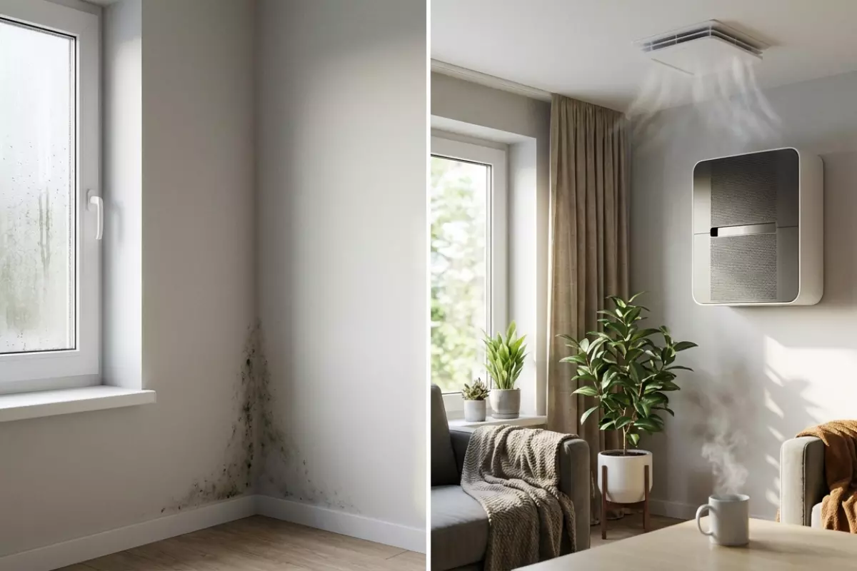 После теплоизоляции дом часто становится заметно герметичнее: меньше сквозняков, теплее, но и влажность начинает расти быстрее. Ориентируйтесь не на «ощущения», а на признаки: запотевание окон, запах сырости, плесень в углах, тяжёлый воздух по утрам. Задача простая — организовать контролируемый приток и удаление воздуха, чтобы влага не накапливалась в помещениях и в ограждающих конструкциях.