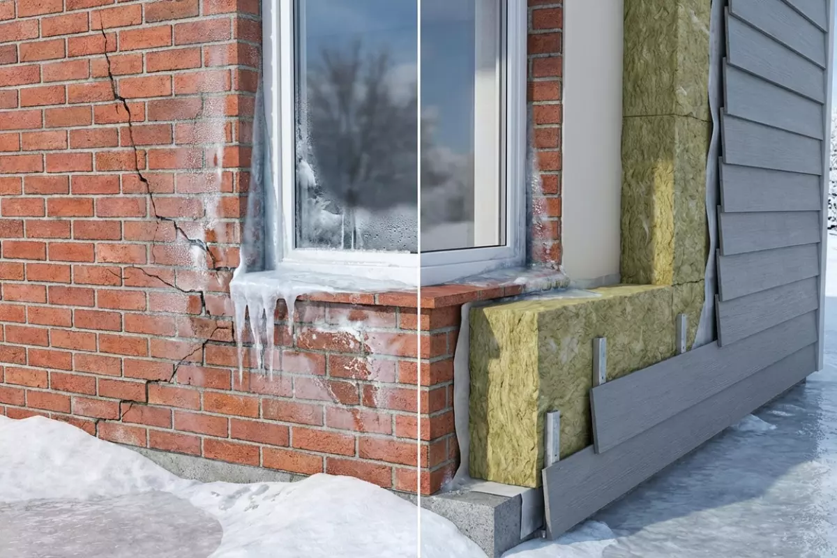 Кирпич и блоки чаще всего «сыпятся» не от возраста, а из‑за влаги и циклов замерзания. Когда стена промокает, вода заполняет поры и микротрещины, а при морозе расширяется и постепенно раздвигает материал. Теплоизоляция помогает держать кладку в более тёплом и сухом режиме: точка росы смещается ближе к наружному слою, а сама конструкция реже проходит через «мокро‑холодно‑мокро».