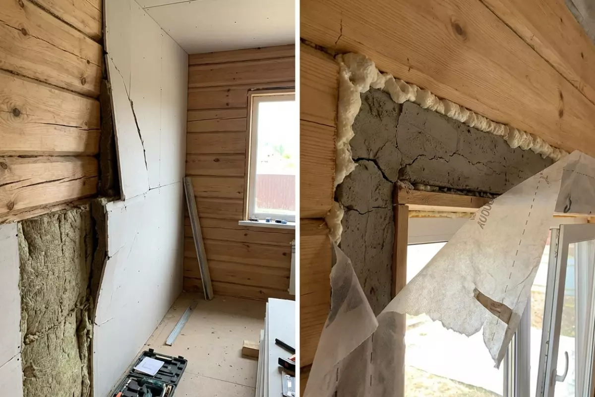 Если закрыть стены утеплителем и отделкой, пока коробка активно «играет», напряжения часто уходят не в усадочные зазоры, а в самые слабые места: углы проёмов, стыки материалов, зоны над перемычками. В итоге появляются микротрещины в штукатурке, разрывы по швам, а иногда и перекосы откосов.
