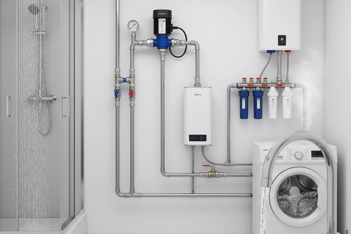 Если по итогам проверки понятно, что проблема именно в недостатке напора при наличии стабильной подачи, усилитель давления — один из самых простых вариантов: ставится на вводе или на проблемной ветке и включается вручную либо по датчику протока.