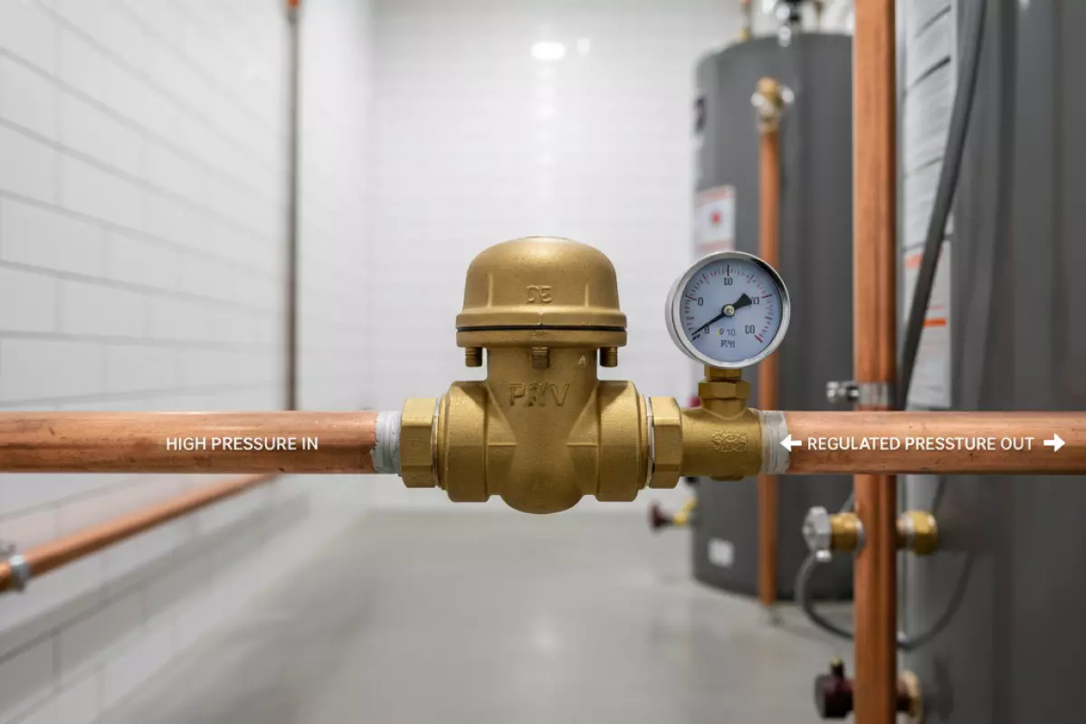 Ставят его так, чтобы он «видел» реальное давление из магистрали и защищал всю внутреннюю разводку. Поэтому чаще всего место — сразу после ввода в квартиру/дом, до разветвления на потребителей. Тогда и смесители, и бойлер, и стиральная машина получают уже стабильные параметры.