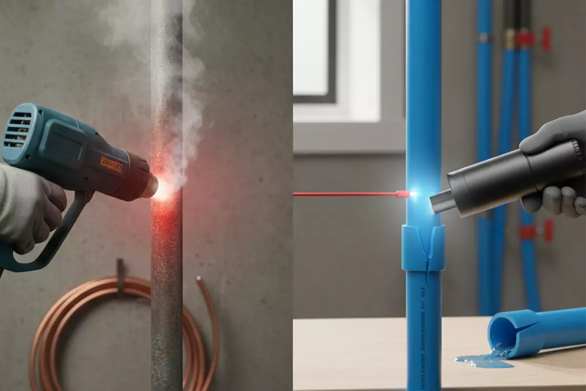 Металл и пластик ведут себя по-разному при замерзании и нагреве: сталь и медь быстро проводят тепло, а полимеры прогреваются медленнее и сильнее «боятся» перегрева. Поэтому один и тот же способ может быть безопасным для металлической магистрали, но рискованным для ПП, ПНД или металлопластика.