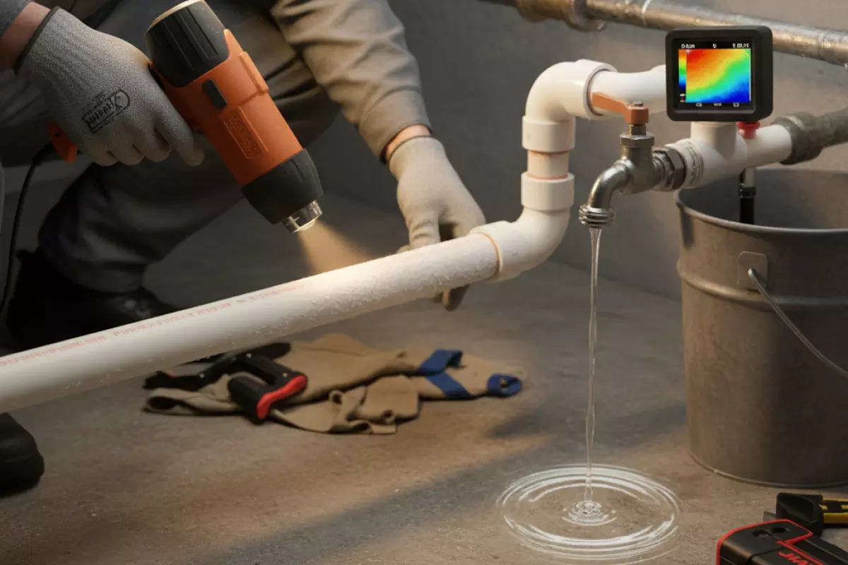 Когда проблемный отрезок спрятан в штробе, коробе или под грунтом, задача сводится к двум вещам: аккуратно найти место промерзания и подать тепло так, чтобы не перегреть пластик, не повредить отделку и не устроить короткое замыкание. Начинайте с проверки, что перекрывающий кран открыт, а в системе есть куда «сбросить» давление: при оттаивании вода резко пойдёт и слабые соединения могут потечь.