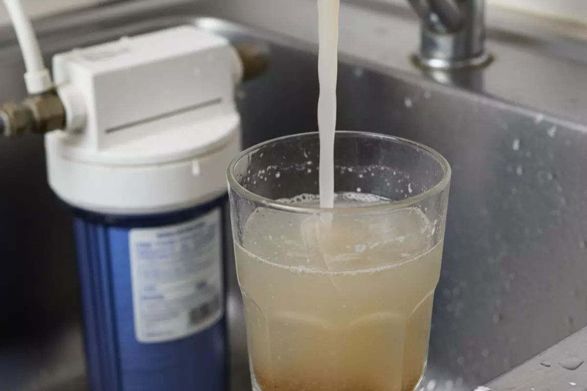 - Вода становится мутной, с взвесью, иногда видны мелкие частицы после отстаивания.