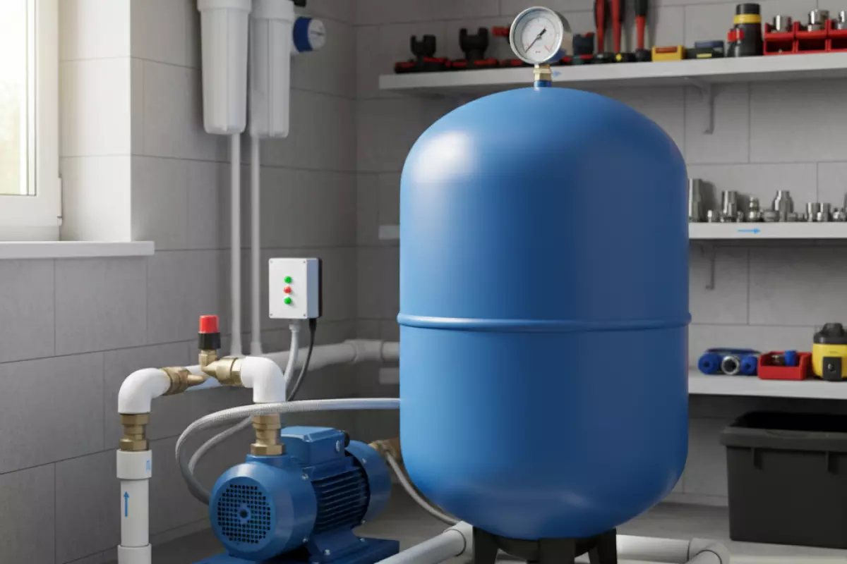 Внутри это не просто «бак с водой», а узел, где вода и воздух разделены эластичной мембраной. За счёт сжатого воздуха создаётся запас давления: насос не включается при каждом открытии крана, а система работает ровнее.