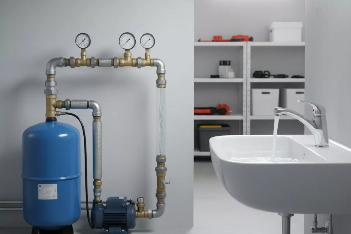 На ровность напора сильнее всего влияют два параметра: давление воздуха в баке (предзаряд) и уставки реле давления. Если предзаряд слишком низкий, полезный запас воды уменьшается, а перепады ощущаются сильнее. Если слишком высокий — бак почти не отдаёт воду, и эффект сглаживания пропадает.