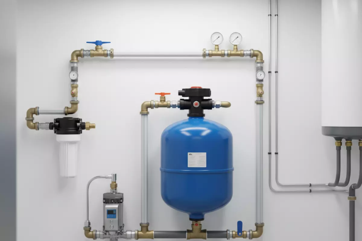 | Санузел/шкаф с коллектором | Небольшой бак для сглаживания включений и давления | Близко к потребителям, проще спрятать | Мало места для обслуживания, требования к шуму | Ревизионный люк, шумоизоляция, надежные соединения |