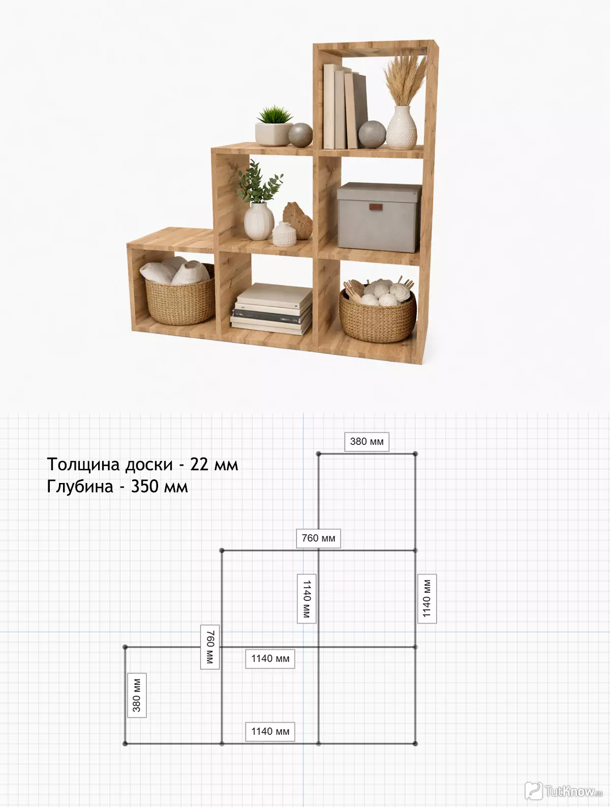 | 2D-чертёж | Точные размеры полки для распила и сборки |