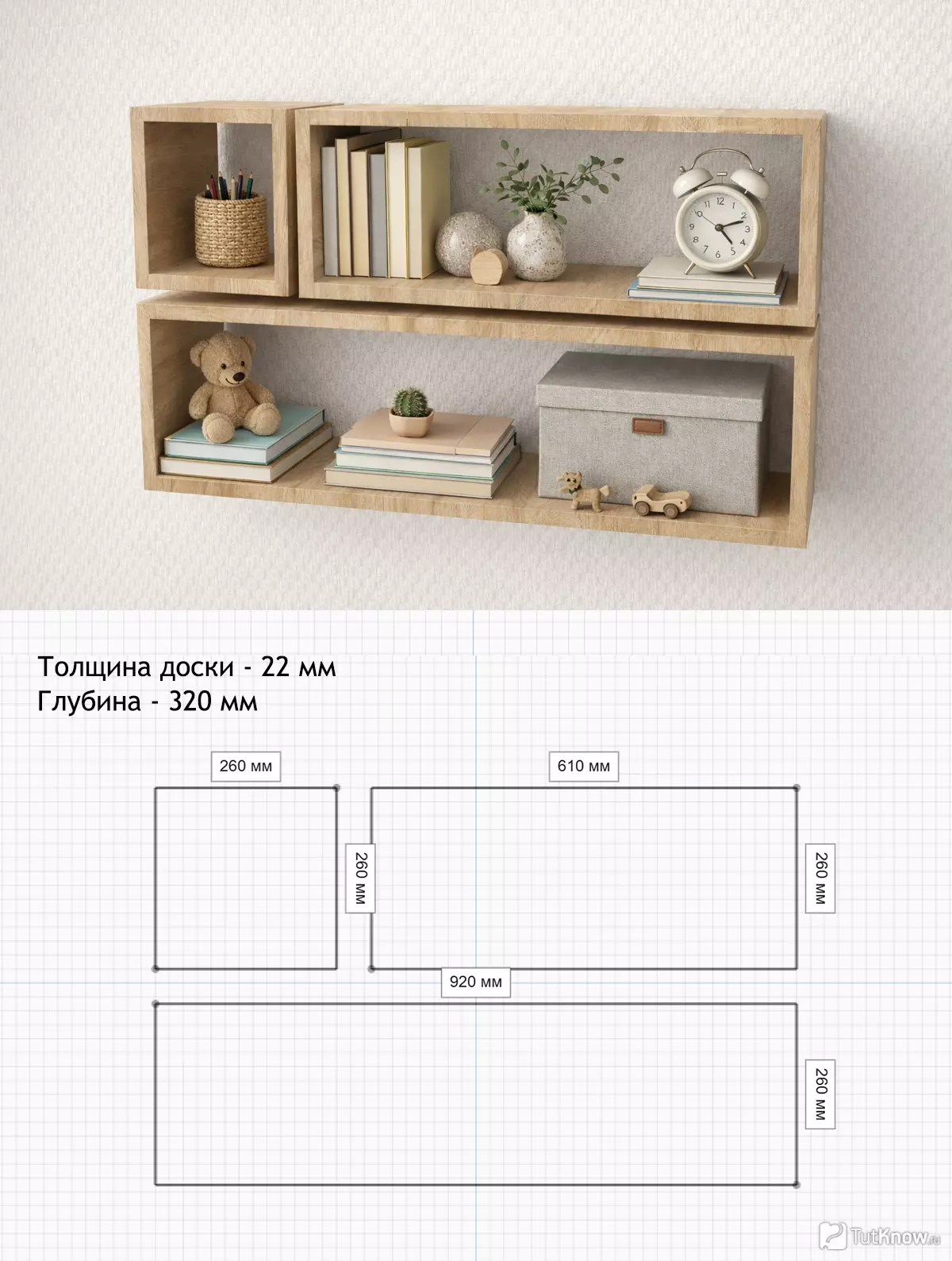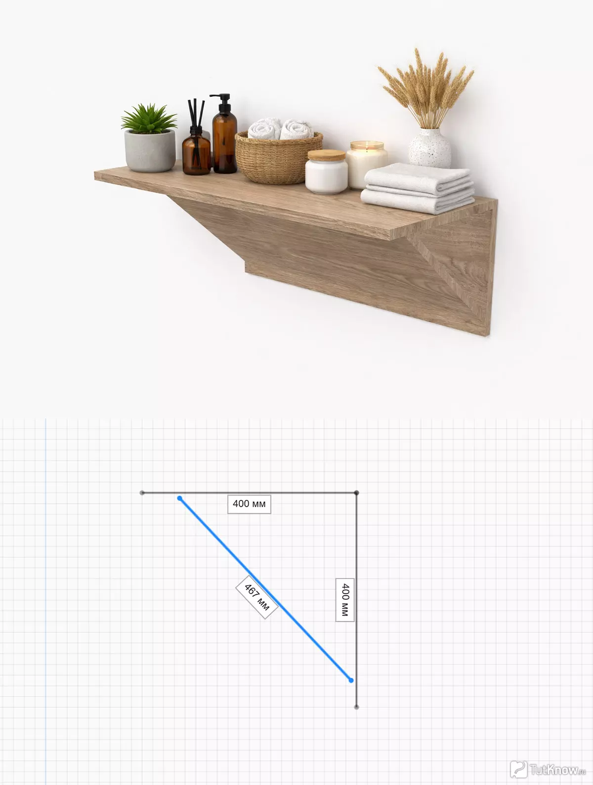 Это позволяет заранее понять, как полка будет выглядеть в интерьере и сколько материала потребуется для её изготовления.