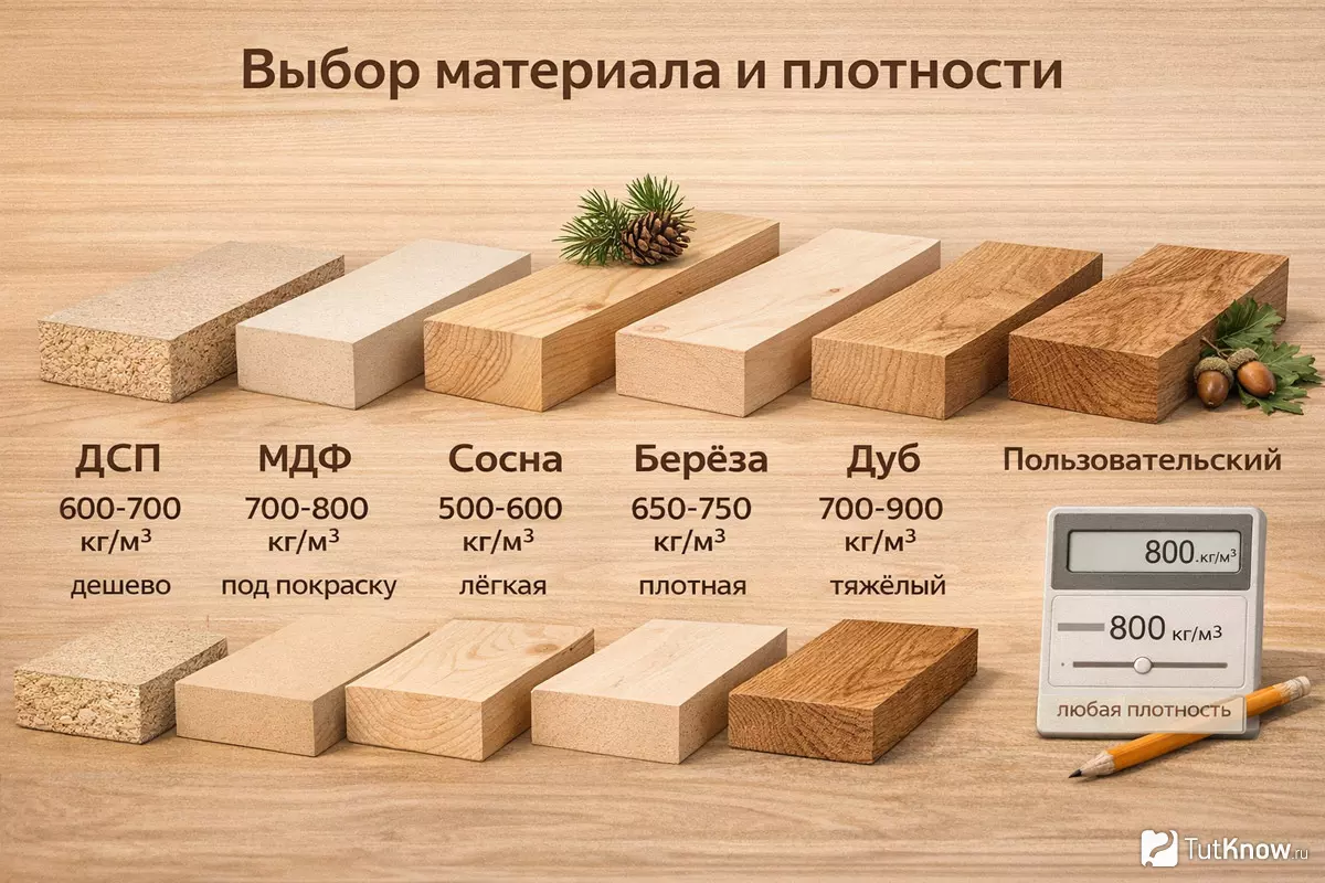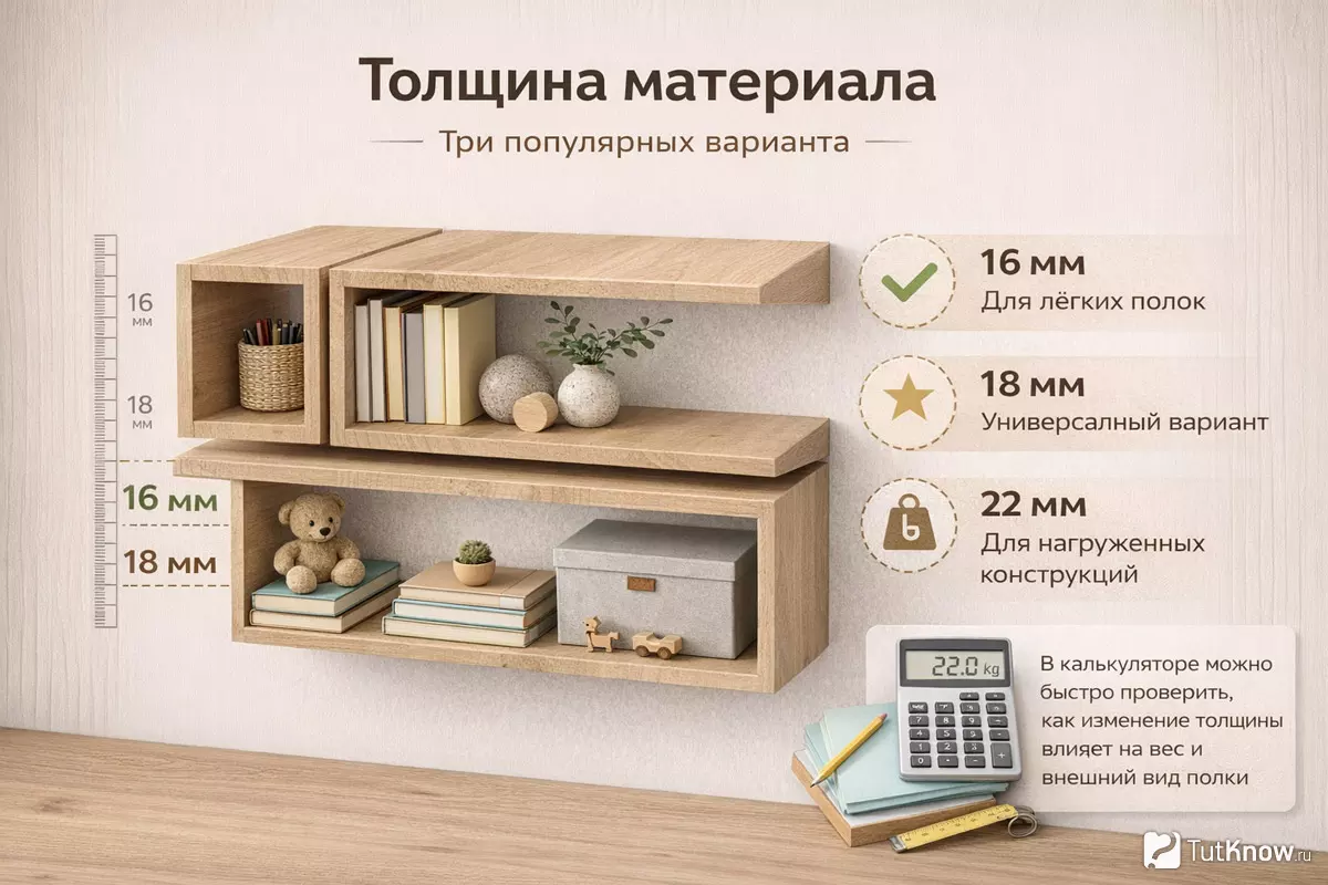 В калькуляторе можно быстро проверить, как изменение толщины влияет на вес и внешний вид полки.