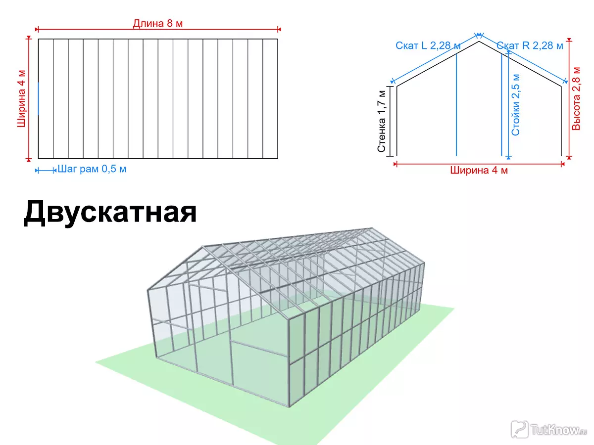 | Ширина теплицы | 2,5–3,5 м | Влияет на угол наклона скатов и общую устойчивость конструкции |