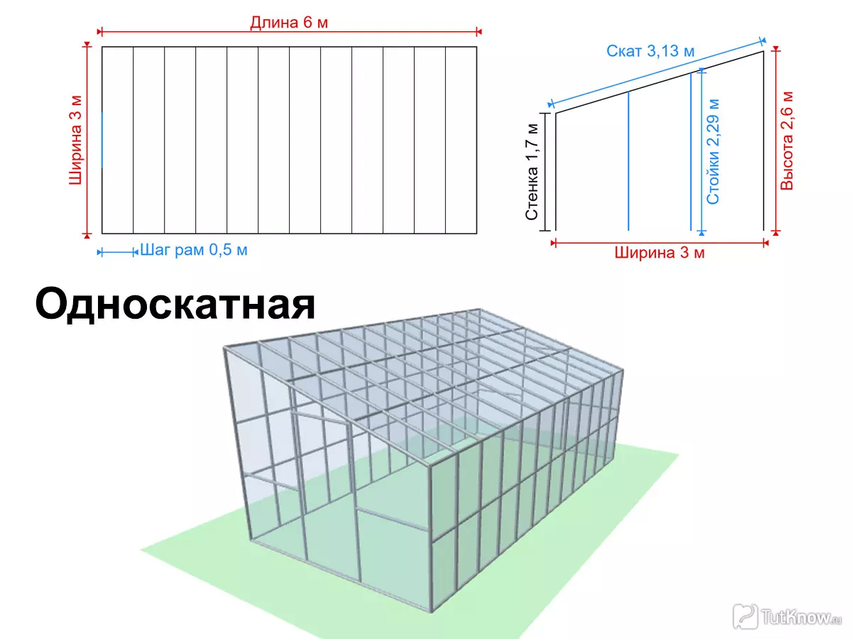 | Каркас | Тип профиля, материал, общее количество элементов | Основная часть стоимости, особенно при широкой теплице |