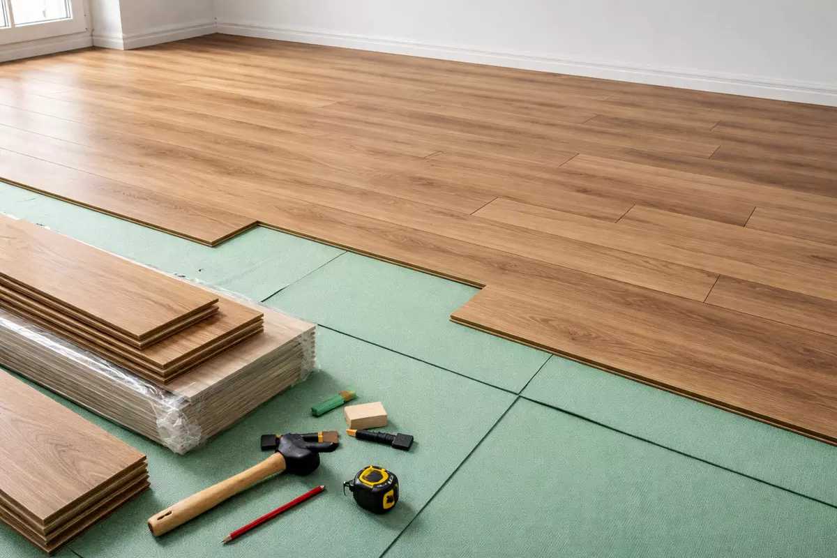 Точный расчёт ламината начинается с правильных замеров. Даже ошибка в 5–10 сантиметров по длине или ширине может привести к нехватке материала или лишним остаткам. Измерения всегда выполняются по полу, рулеткой, вдоль стен.