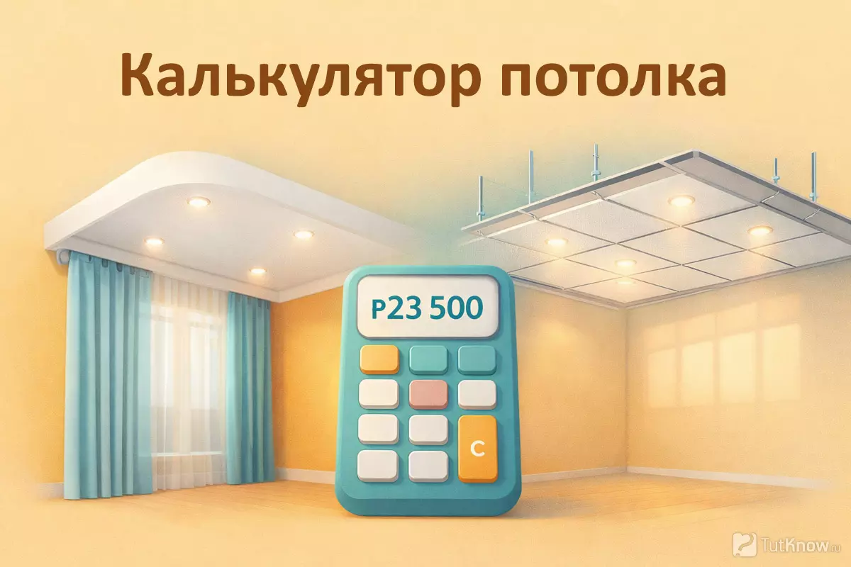 Калькулятор натяжного и подвесного потолка помогает быстро прикинуть ориентировочную стоимость работ и материалов по размерам помещения. Достаточно выбрать тип потолка и способ расчёта (по длине и ширине или по площади и периметру), чтобы получить площадь, периметр, метраж багета и итоговую сумму по основным позициям.