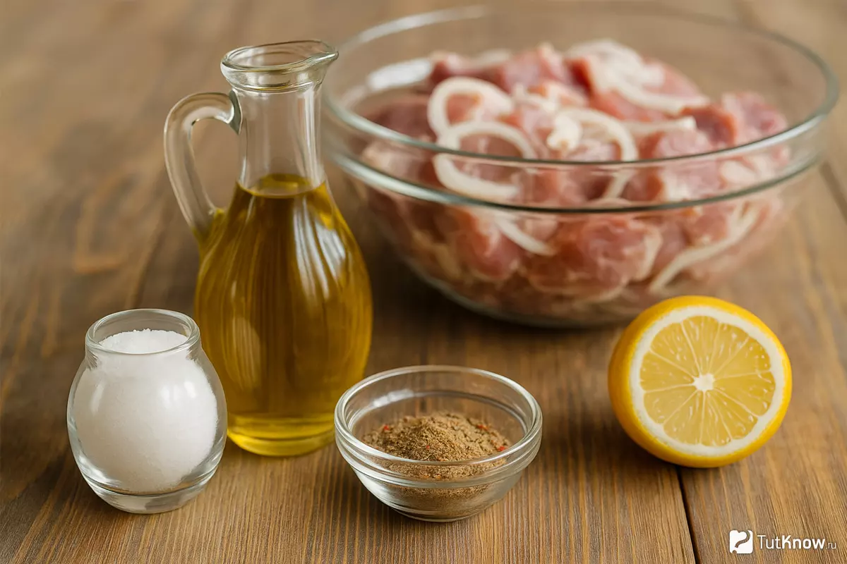 Соль/кислота — по классике считаются от массы мяса, лук сюда не включают. Он отдаёт немного сока и сладости, но это не требует пересчёта безопасности или «химии» маринада.