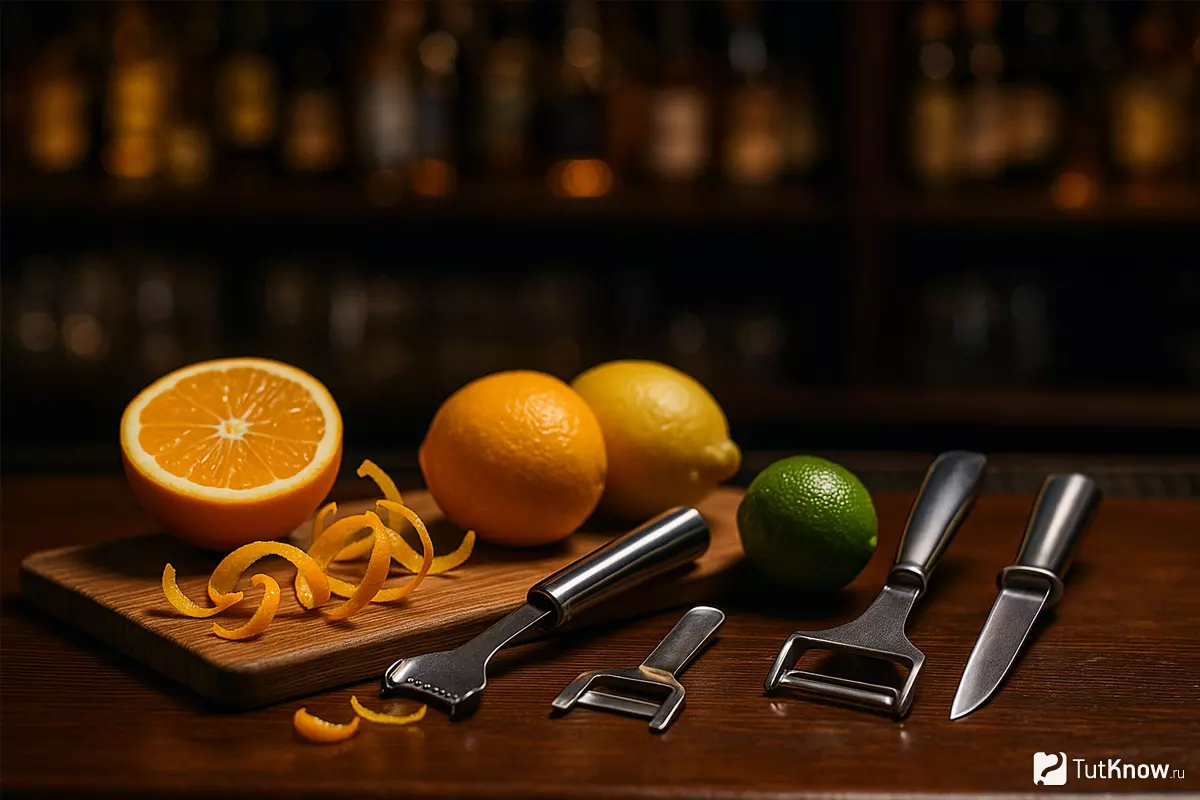 Для снятия тонких полосок цитрусовой цедры без белой части. Свежая цедра — важный элемент аромата в классических коктейлях вроде Негрони или Олд Фэшн.