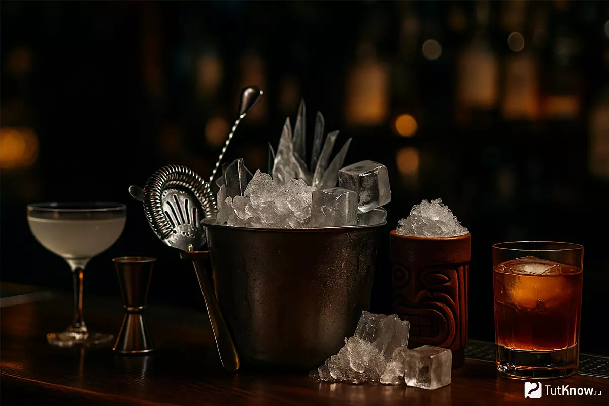 - Различайте типы льда: крупный для олд-фэшн, мелкий для джулепов, дроблёный для тикки.
