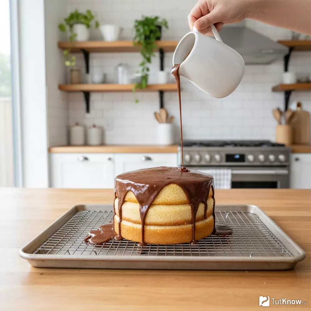 Частая ошибка — рассчитывать ганаш только по диаметру или стороне торта, забывая, что высокая конструкция требует значительно больше покрытия. При высоте от 10 см расход увеличивается ощутимо.